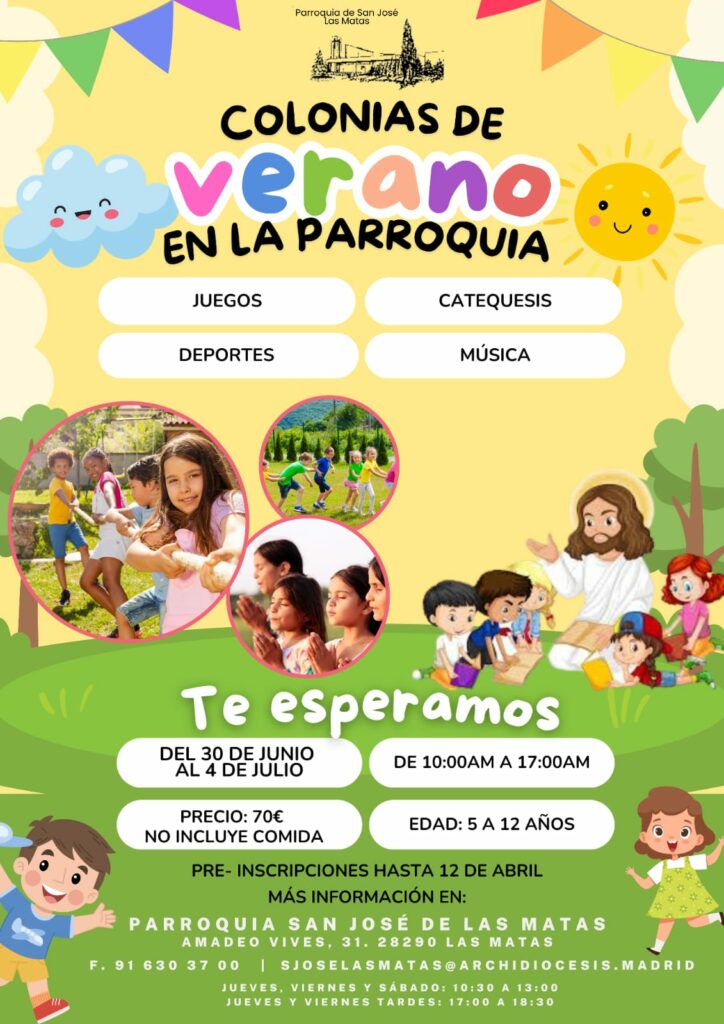 Actividades Parroquia Noticias Index Parroquia Primera comunión Colonias de verano en la parroquia 8 abril, 202525 abril, 2025 formulario para colonias verano 2025Descarga